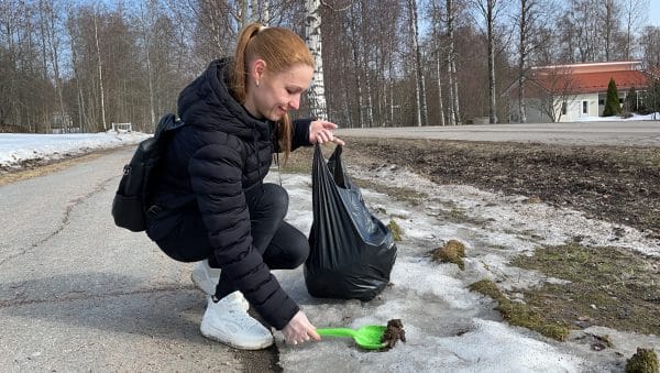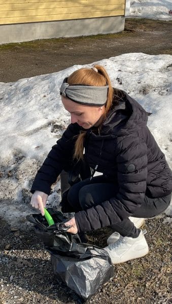 Valtaosa koirankakoista kerätään onneksi jo tänä päivänä aina lenkkien yhteydessä biopusseihin samantien, mutta joskus kikkareet jäävät ojan penkalle ja valitettavan usein sille lentää myös tupakantumppeja, karkkipapareita ja muutakin pikkuroskaa. Niitä tänään napsimme roskapusseihin Tiian johdolla. Kaksitoista roskapussia täyteen roskia ja koiran kakkaa yksin kirkonkylän kierroksella. Teimme tämänkin koronaturvallisesti eli vain pienissä porukoissa yhteisestä kokoontumisesta eri suuntiin lähtien. Ja voisi hyvin todeta, että tällainen yhdessä tekeminen on näinä aikoina mitä parasta tekemistä. Ulkona ja etäisyyksistä huolehtien.