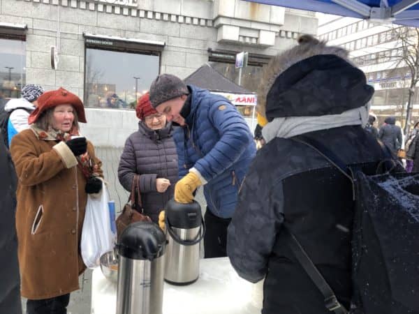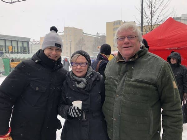 -Yöllä oli talven pahin talvimyrsky ja se näkyi hieman liikenteessä ja varmasti jotkut jäivät kodinkin lämpöön. Väkeä kuitenkin oli liikkeellä ja monta mukavaa juttutuokiota ja keskustelua tuli päivän aikana käytyä, kertoi Timo Heinonen.