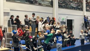 LFT avasi eilen Lastikan ovet jo tuntia ennen peliä. Hallin katsomopaikat täyttyivät nopeasti ja jo pelin käydessä lisäpenkkejä kannettiin kaukalon reunoille. LFT LäySän nousutaistelu sai siis todenteolla loppilaiset ja kauempaakin tulleet liikkeelle. Itseasiassa eilen useammankin muualta tulleen kanssa juttelin miten nyt pelejä tullaakin Riihimäeltä, Hyvinkäältä ja jopa kauempaakin katsomaan Lopelle. Ja sama koskee muuten myös pelaajavirtaa. Lopen hyvät olosuhteet ja ammattimainen toiminta niin joukkueiden valmennuksessa kuin seuratoiminnassakin kerää porukkaa. Jos meiltä siis ennen ajettiin pelaamaan ja katsomaan salibandya Riihimäelle, niin nyt yhä useampien suunta onkin Lopelle.
