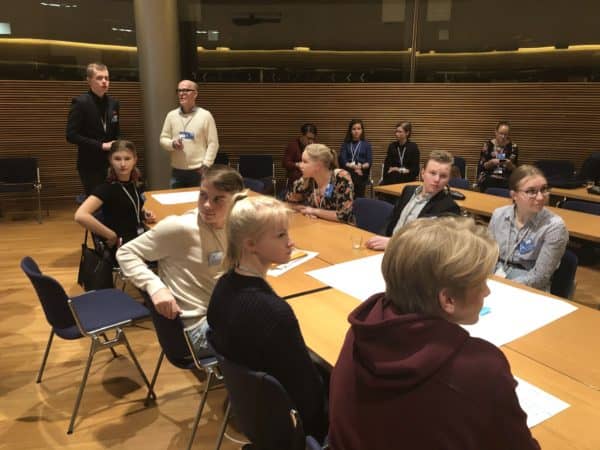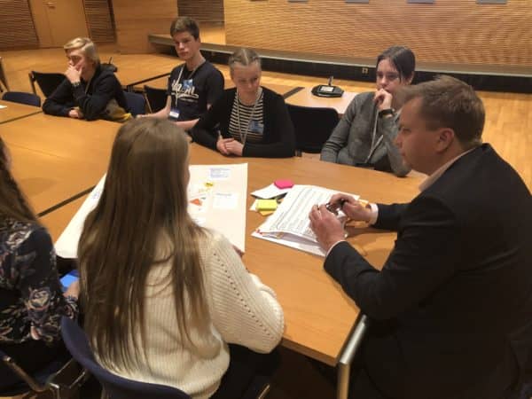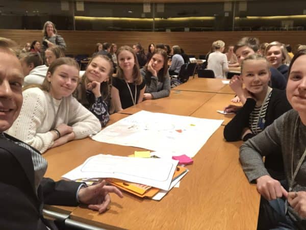 Eduskuntaviikko huipentui tänään perjantaina Nuorten Parlamentin kerhopäivään. Nuorten Parlamentti kokoontuu joka toinen vuosi suurempaan omaan täysistuntoonsa eduskuntaan ja sitten välivuosina on näitä kerhopäiviä. Niin kuin olette huomanneet niin olen aina yrittänyt löytää aikaa lapsille ja nuorille ja niin tein tänäänkin. Kun eduskunnan työviikko päättyi ja välikysymysäänestyskin oli käyty niin jäin vielä nuorten parlamenttiläisten kanssa kerhopäivään. Mielenkiintoisia ja mukaansa tempaavia pisteitä ja tehtäviä ja ennen muuta todella osaavia ja innostuneita nuoria. Niin kuin olen monet kerrat täällä ja Facebookissakin todennut niin meillä on kyllä erittäin fiksuja ja aikaansaavia nuoria tässä maassa.