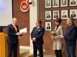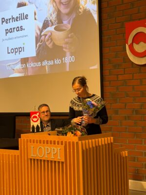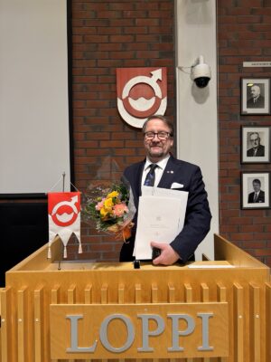 Kokouksen alussa minulla oli erityisen mieluisa tehtävä ensin julkistaa tieto siitä, että Lopen kunta oli saanut Unicefin Lapsiystävällinen Kunta -tunnustuksen ja sitten ojentaa valtuutettu, yrittäjä ja ystävälleni Jarmo Laukkaselle tasavallan presidentti Alexander Stubbin 6.12.2025 myöntävä Suomen Leijonan ritarikunnan ansioristi. Jarmon slogan vaaleissa on ollut aina ”Tekijämies” ja se kyllä parhaalla mahdollisella tavalla kuvaa tätä miestä. Uskomaton energiamäärä ja tekemisen tahto ja täytyy kyllä hattua nostaa monessa. Ja kuten eilenkin totesin niin Lopen yrittäjien ja yritysten keskuudessa Jarmo on se tekijä, joka on aina paikalla ja ollut myös keskeisin esimerkiksi tuon Silmänkannon työpaikka-alueenkin yritysten sinne tulossa ja kotiutumisessa. Uskomaton määrä kontakteja ja yhteydenottoja ja sitä tekemistä.