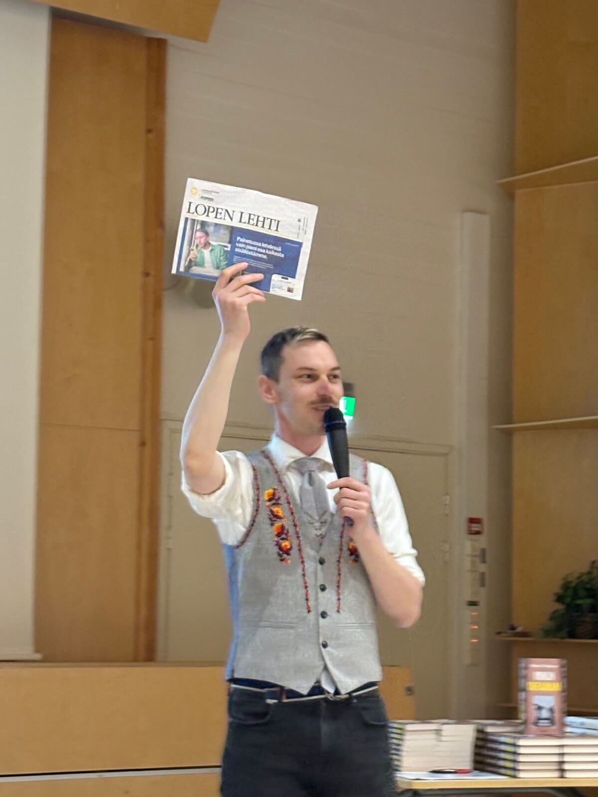 Illalla sitten vielä Lopen Kirjaston ja Lopen Opiston kirjailijailta, mikä rikkoikin ennätyksiä. Luentopaikka muuttui kahdesti ensin kirjaston Fallesmannista valtuustosaliin ja sitten vielä koulukeskuksen Loppisaliin, että kaikki lähes 200 kuulijaa mahtuivat mukaan. Taisi tarkkaluku on pari vaille 180. Vieraanamme siis tänään kirjailija ja ulkomaantoimittaja Maxim Fedorov ja täytyy kyllä sanoa, että harvoin saa tällaisia kirjailijailtoja kokea. Erittäin mielenkiintoiset kirjat ja tarinat ja myös loistava tapa esiintyä ja kertoa.